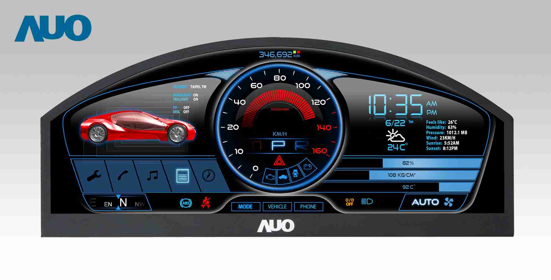 龙门国际 12.3吋超高解析异型切割车用面板,,,拥有流线外观及精细画质